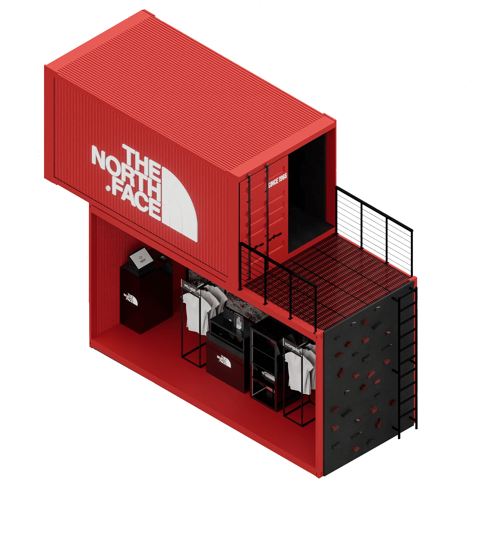 La tienda se compone de dos contenedores industriales, diseñados para exhibir productos de manera innovadora y permitir la circulación interactiva de los visitantes.